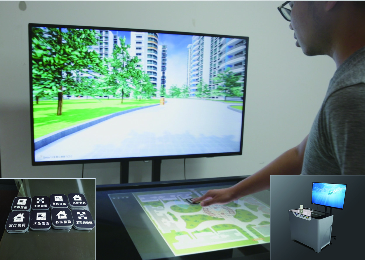 殊未BVP3D-TABLE桌面式虚拟现实系统,是一款全新的人机交互平台。它集成了3D实时渲染、智能感知识别、新型交互引擎等多种前沿技术。用户可以基于该平台发